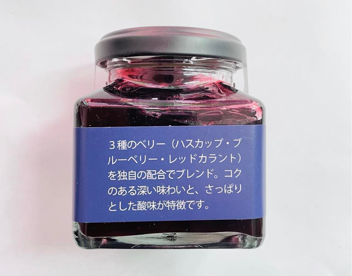 原材料:ブルーベリー、ハスカップ、レッドカラント、有機きび砂糖
