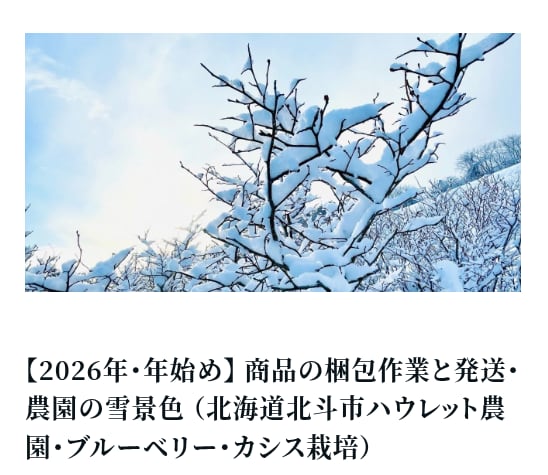 最新ブログ(農園のフォトアルバム)【2026年・年始め】 商品の梱包作業と発送・農園の雪景色